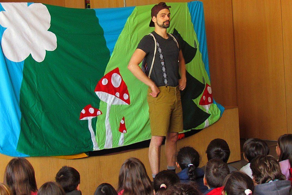 Jackie and the Giant is an interactive action-based fairy tale which helps young learners of English learn and practice basic grammar and vocabulary. The main character is a young boy called Jackie. At the beginning of the story, he is being chased by a bad giant who wants to eat him. He works together with the children in the audience to speak English to this giant and also, later, to a good giant too. The play is very effective at making young learners practice their English very spontaneously and naturally.